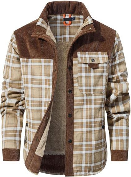 HYPESTFIT Men's Corduroy Plaid Sherpa